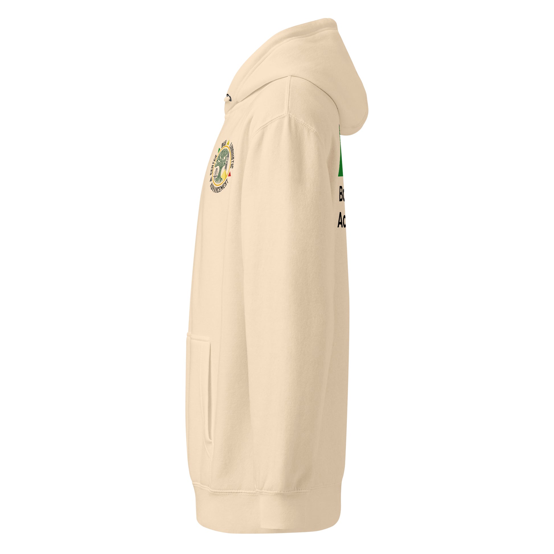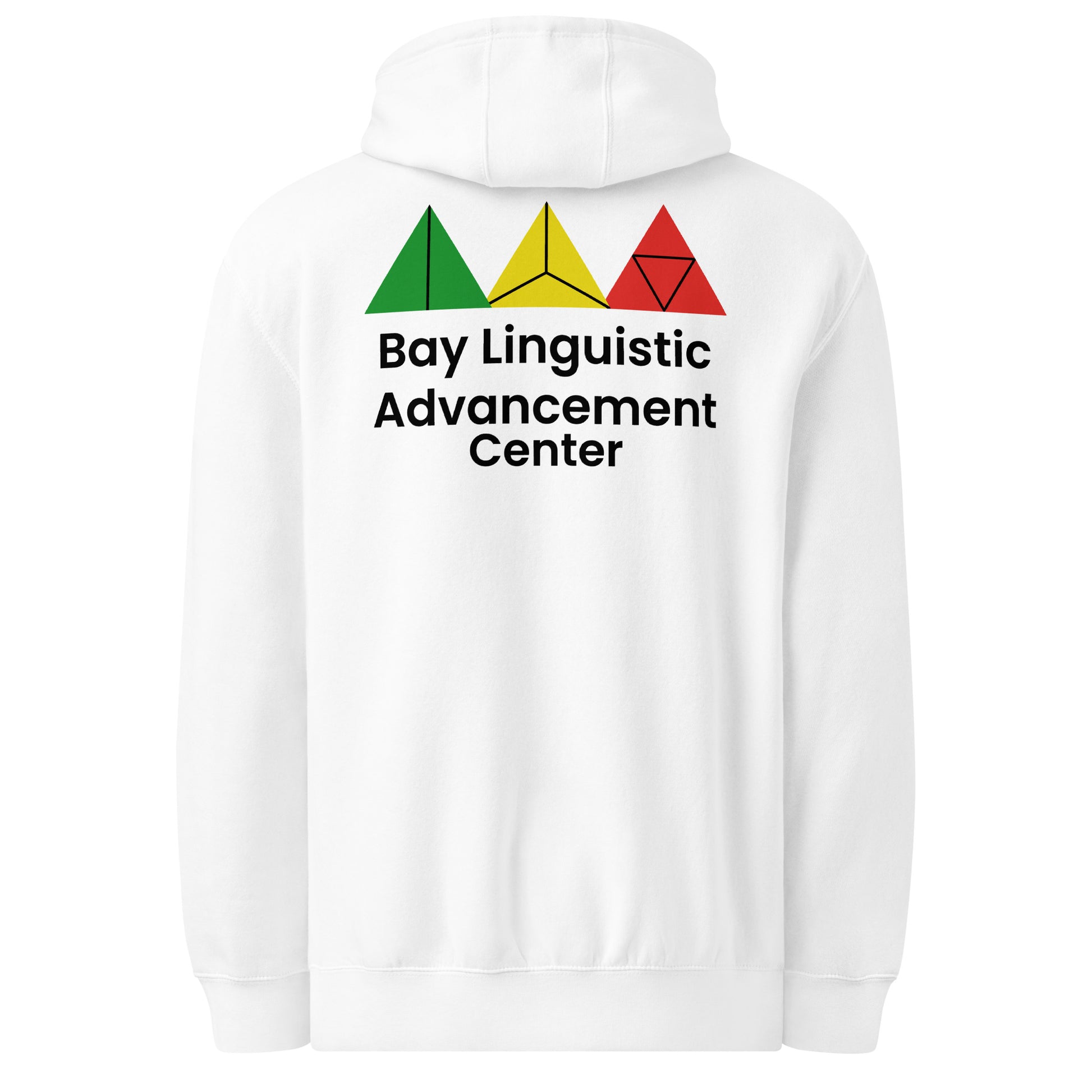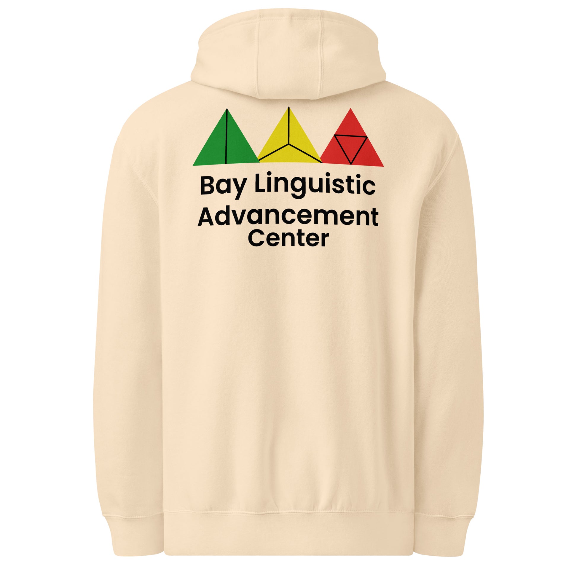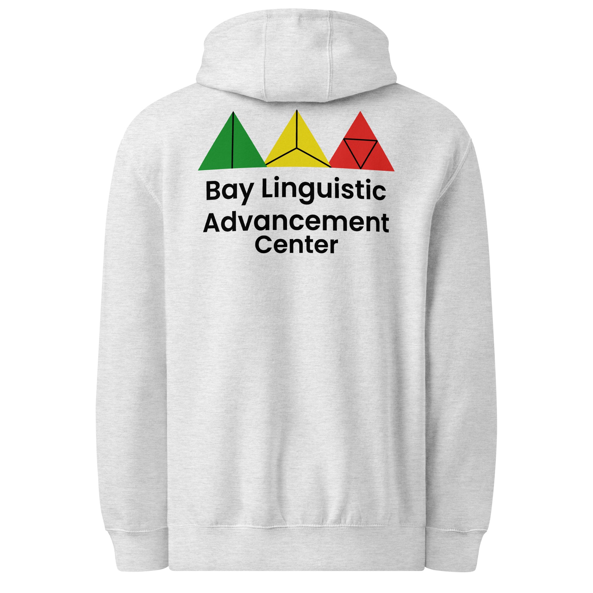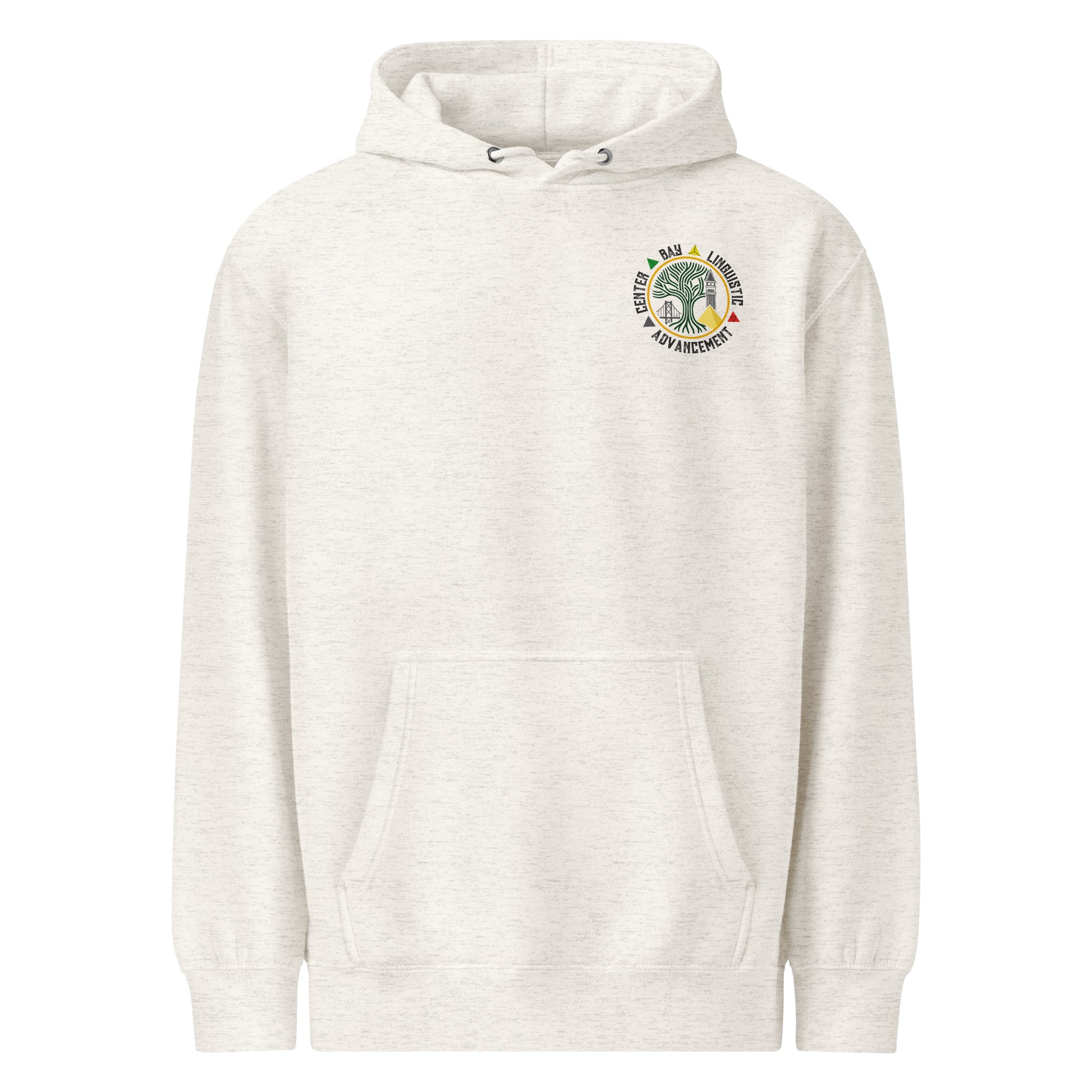 Showcase your connection to language, culture, and community with this premium unisex mid-weight hoodie. The front features the Center for Bay Linguistic Advancement emblem with a tree of knowledge and iconic Bay Area landmarks, while the back displays colorful geometric symbolism and bold center text. Designed for warmth, identity, and everyday expression, this hoodie is ideal for students, educators, and supporters of cultural education. Soft feel, structured fit, and meaningful message — all in one.