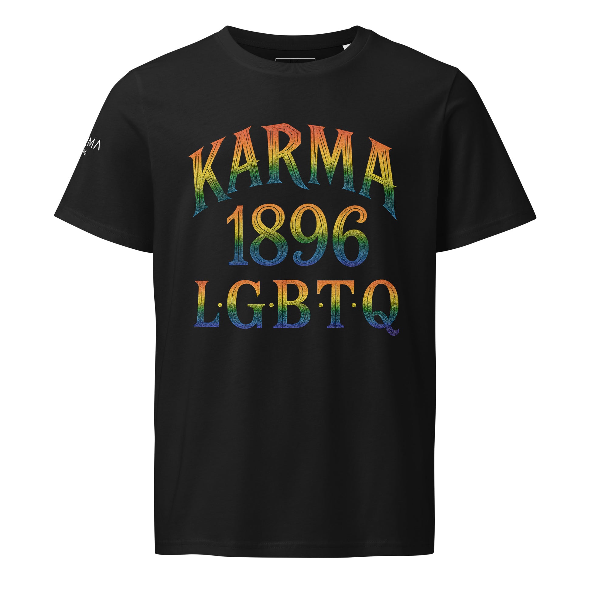 Karma 1896 LGBTQ Rainbow Pride Front & Back T-Shirt – Colorful Glitter Statement Tee for Pride Month, Gay Rights, and Equality Unisex organic mid-light t-shirt